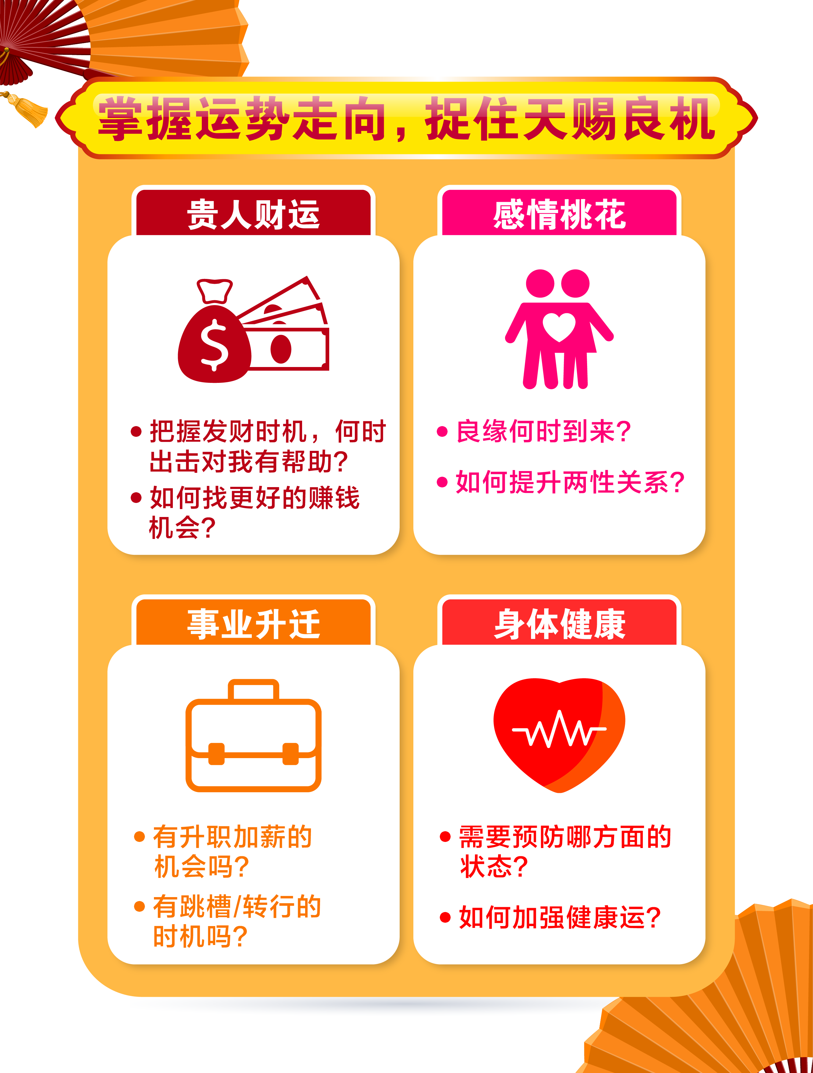 《十二神数》摒弃了传统易经复杂艰涩的天干地支,以每个人出生的年、月、日、时,转化为1-12的十二个数字,能够超快速排盘,推断人一生的运势走向。相较于只看出生年份的十二生肖,十二神数能够解析更多的维度。除了一般的健康、财富、事业、贵人、婚姻等,十二神数可以解码你的六亲、智慧、出行、转运等等。因此透过十二神数来测算自己来年的运势,往往会比其他传统的测算看得更加全面,对自己的机会掌握的更通透!